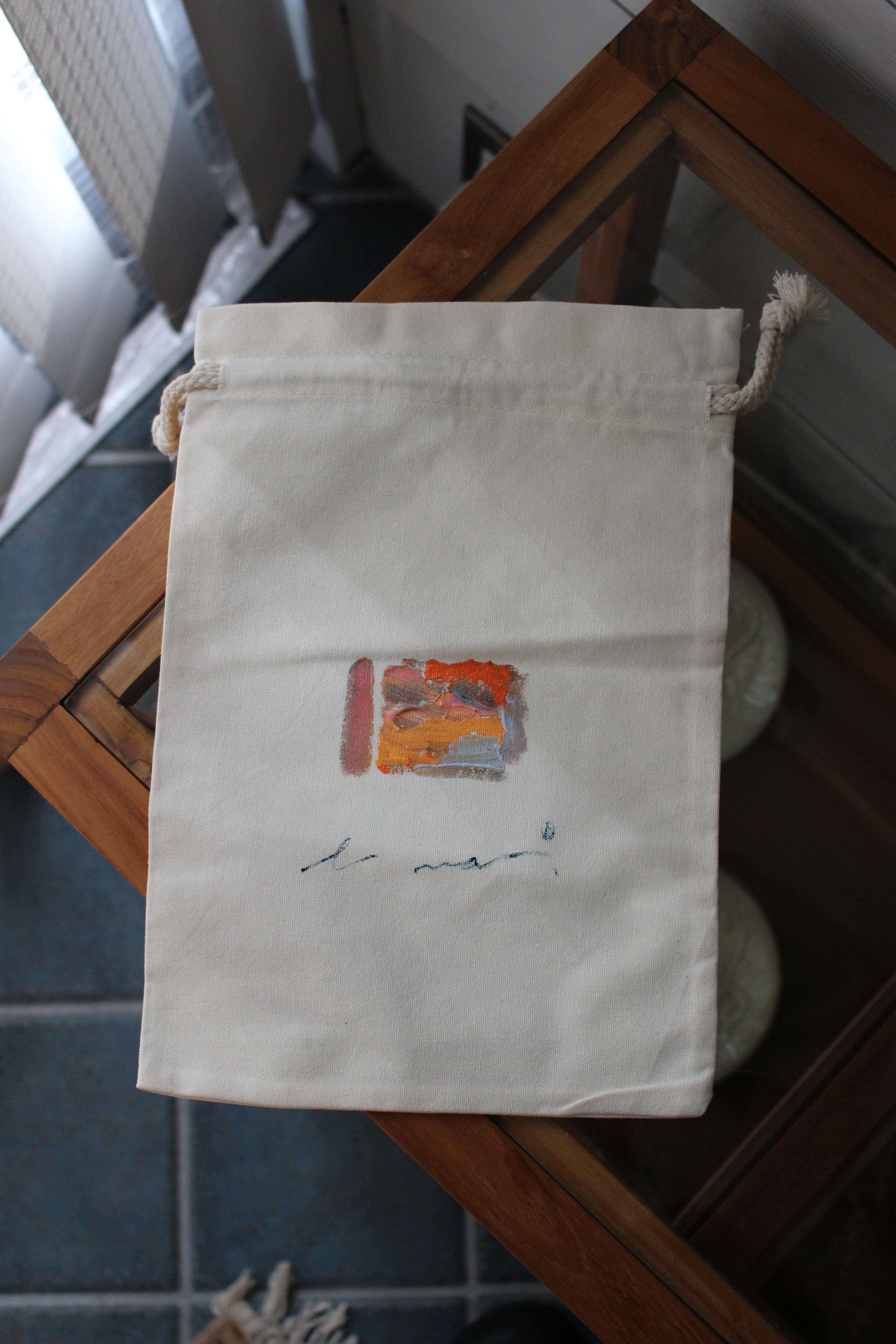 手書きで書いた一点ものの巾着です。