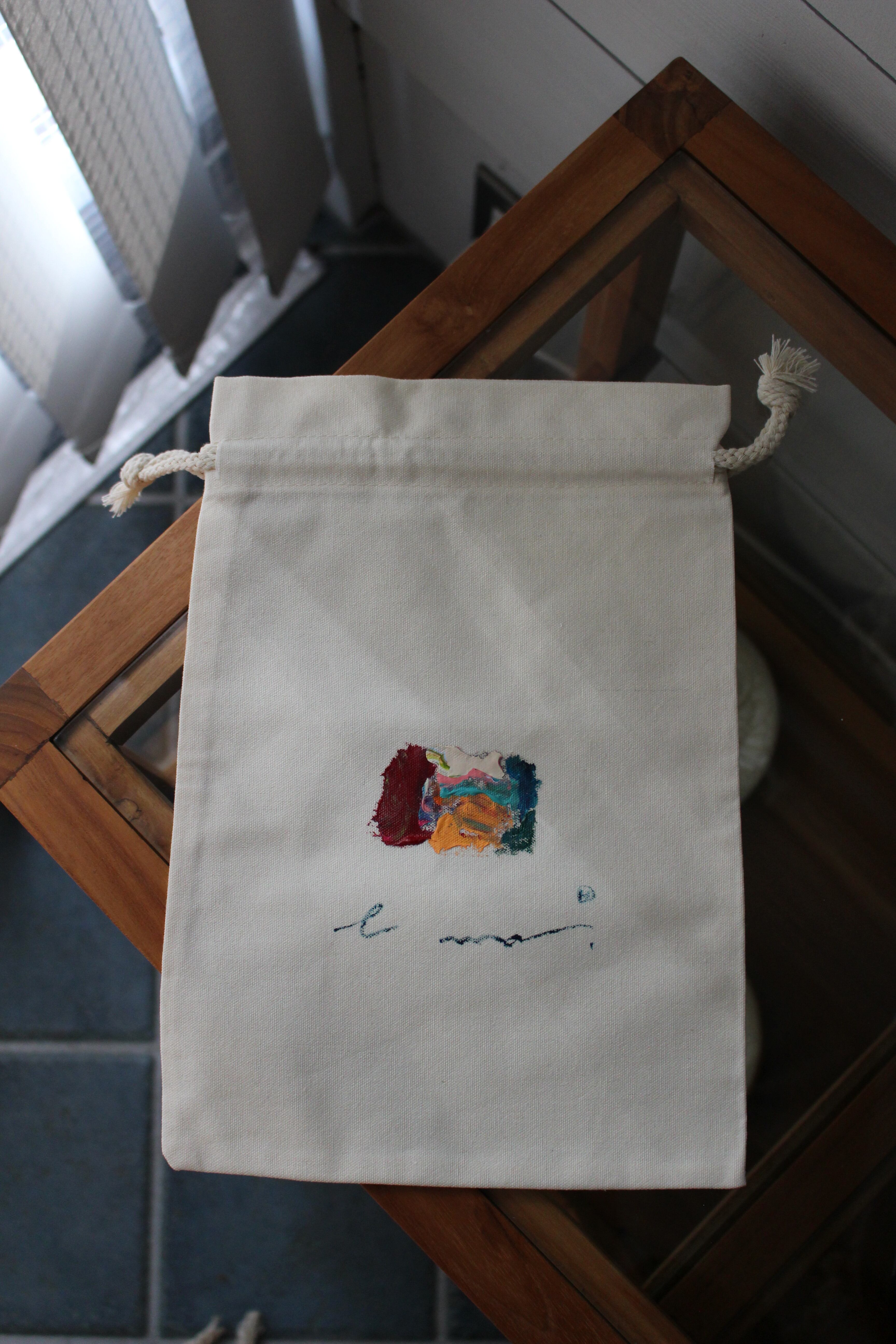 手書きで書いた一点ものの巾着です。